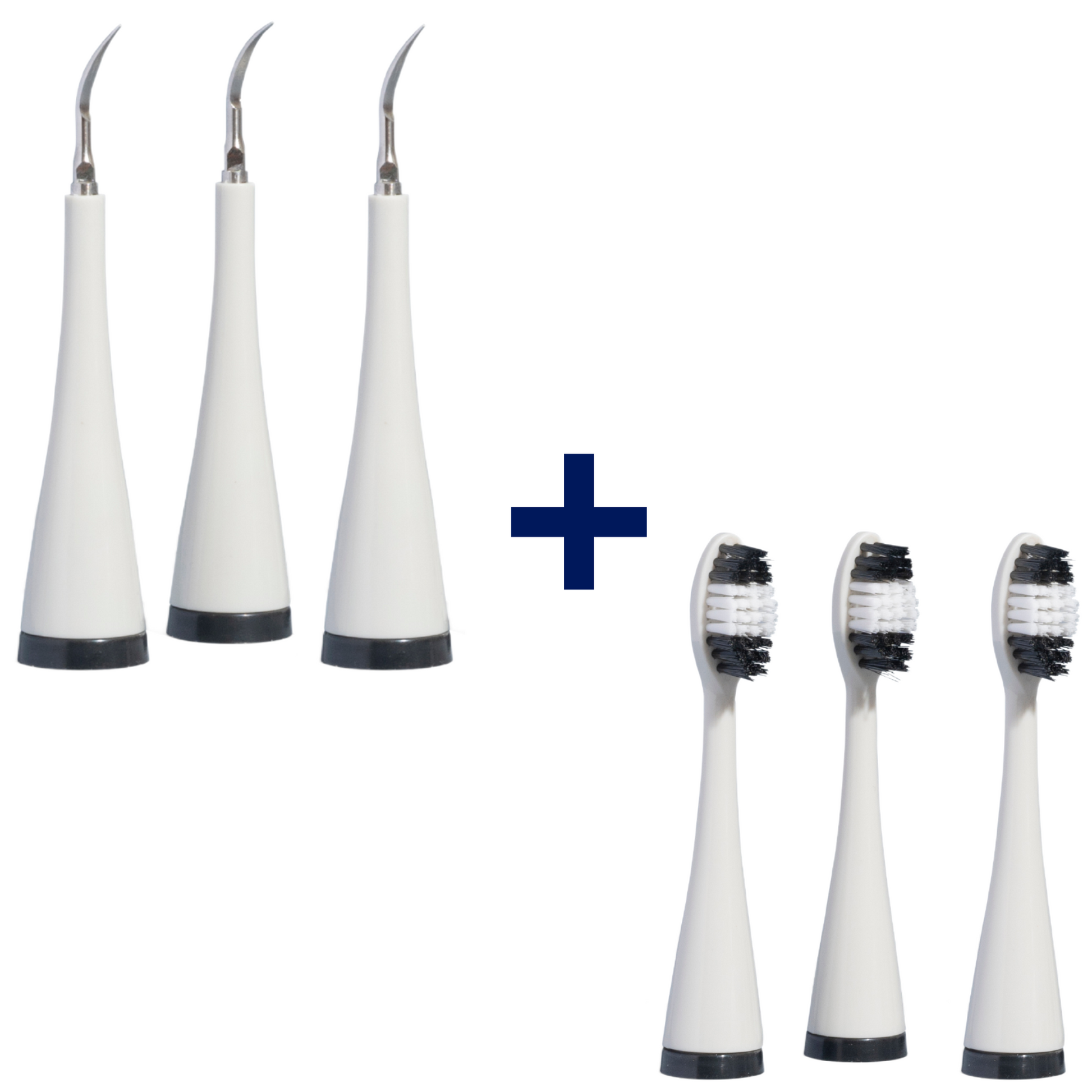3 têtes de brosse à dents + 3 têtes de détartreur - Ivoire